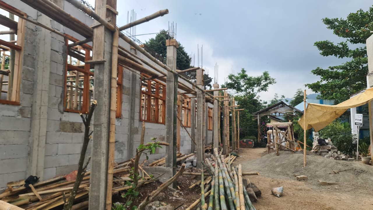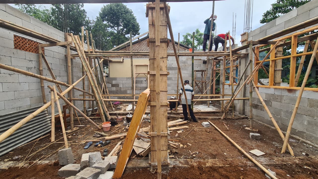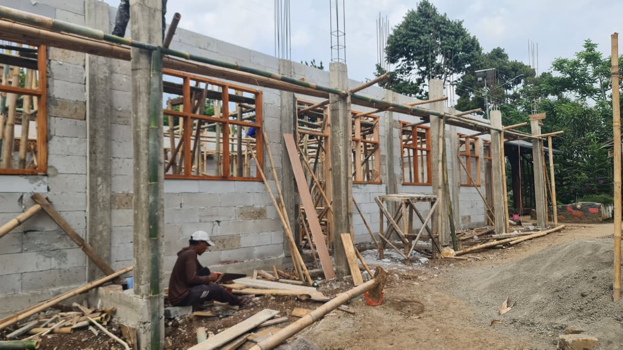Proses Pembangunan Masjid di lingkungan Yayasan Santri Baiti Jannati Nusantara, Sukabumi, Jawa Barat,