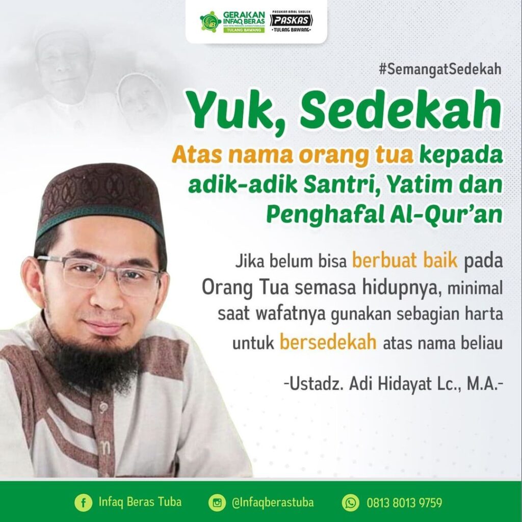 Peluang amal bagi #OrangBaik seperti Anda untuk menjadi #OrangTuaAsuh yang insyaAllah akan senantiasa DIDO’AKAN oleh Ribuan Anak Yatim dan Penghafal Al-Qur’an setiap hari. Cukup dengan seribu sehari atau Rp. 25.000 / bulan (boleh lebih), Anda sudah menjadi #OrangTuaAsuh