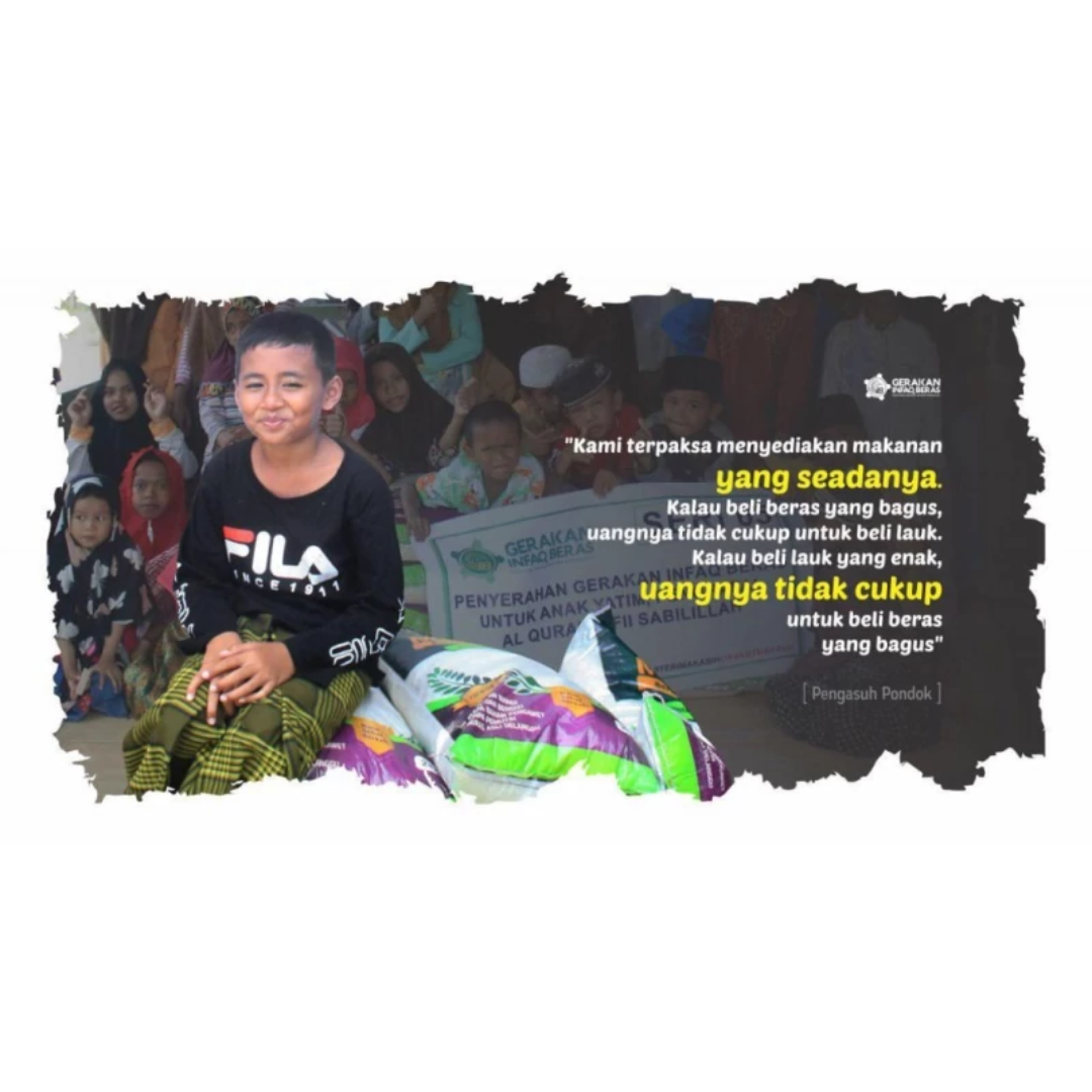 Donasi yang terkumpul nantinya akan digunakan untuk membeli beras terbaik Untuk Santri Yatim dan Penghafal Quran.
